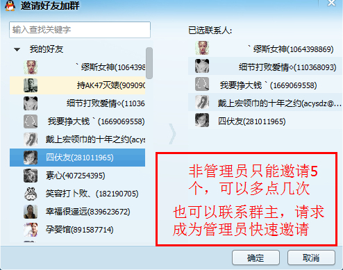 2、选择需要邀请的人点确定。